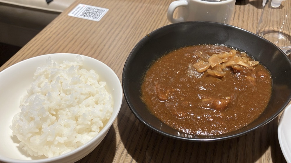 ラウンジでご飯!やっぱJALのラウンジのカレーは美味しい!本当に美味しい、肉がちゃんと入ってるんすよね!味ありえんぐらい濃い!