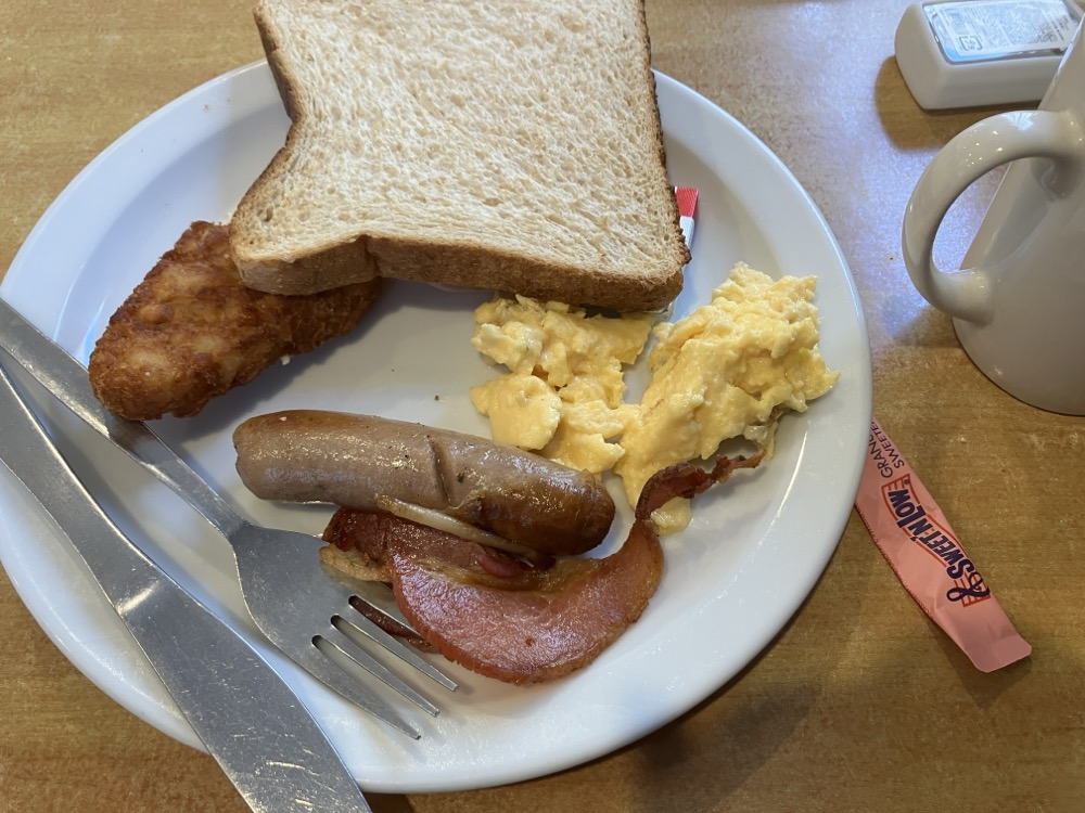 大体、ソーセージ、ベーコン、食パン、マーガリンを摂取します。美味しかった!