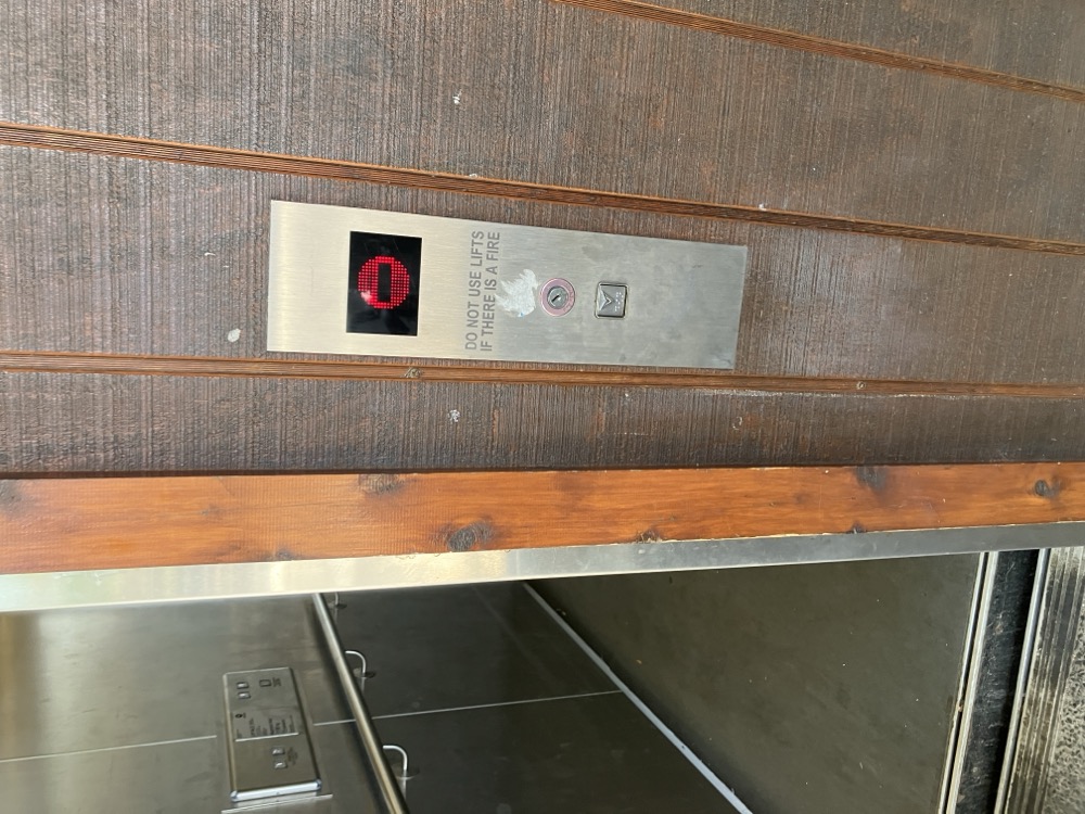 オーストラリアのエレベーター、1階がGで2階が1表記なので非常にややこしい。2階が1階って何を数えてるんだ笑